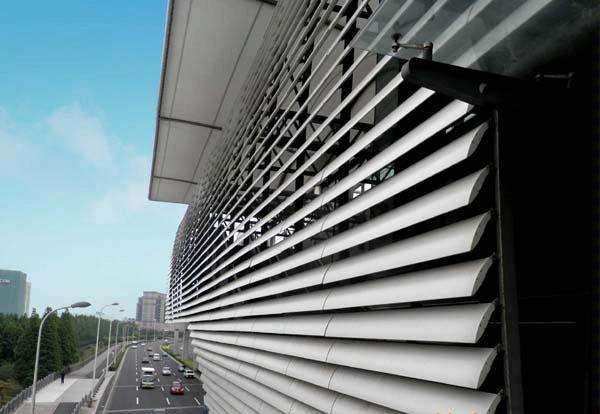 遮阳天花集功能性和装饰性于一体,精巧的结构设计、高品味的产品品质、多变的外形和鲜明柔和的色彩,使得系统大气华美,即能提高建筑整体形象,又能够保证高效的遮阳效果。广泛应用于大型幕墙外遮阳或需通风换气的消防领域。